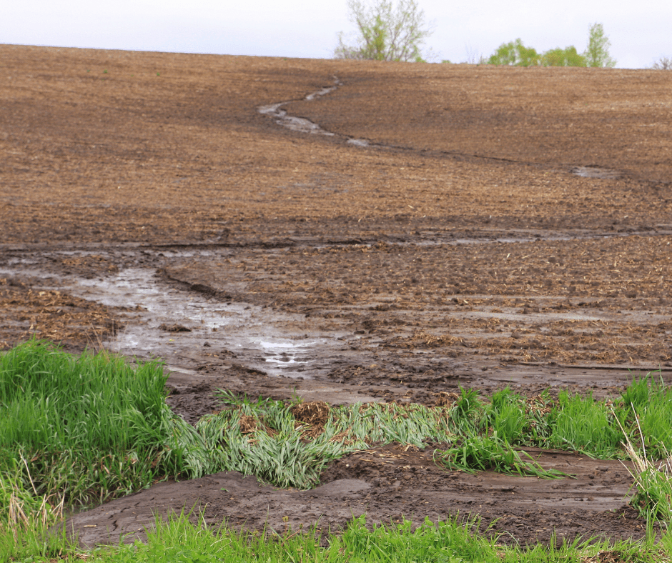 However, such tillage practices have distinct disadvantages. Bare soil is more prone to erosion by wind, rain, and runoff. I can guarantee no farmer likes to see his/her soil washing off his field, especially when the fertilizer applied to the soil runs off with it. Furthermore, while soil and fertilizer are valuable on the field, they become pollutants to receiving streams, rivers, and lakes, degrading water quality.