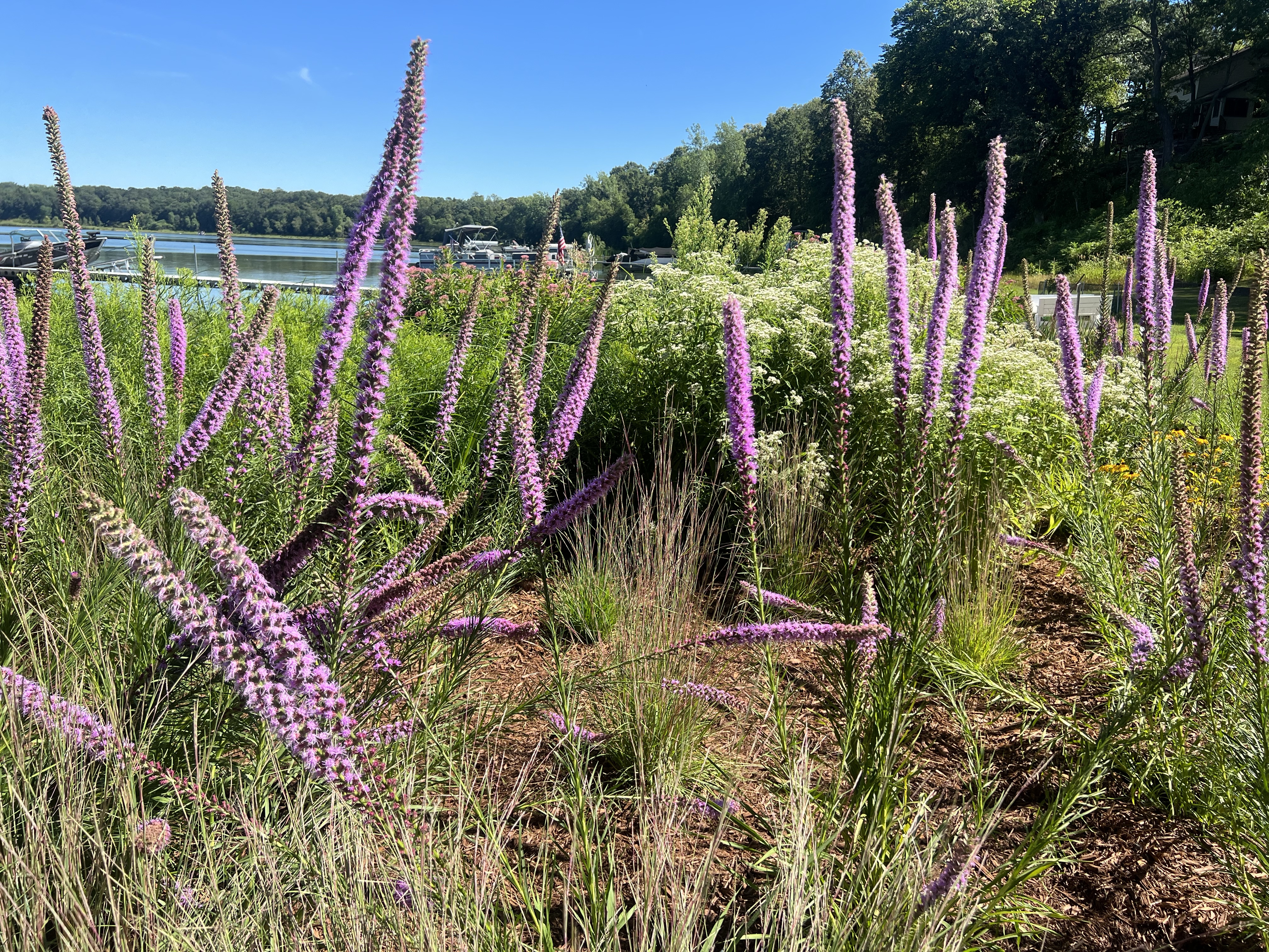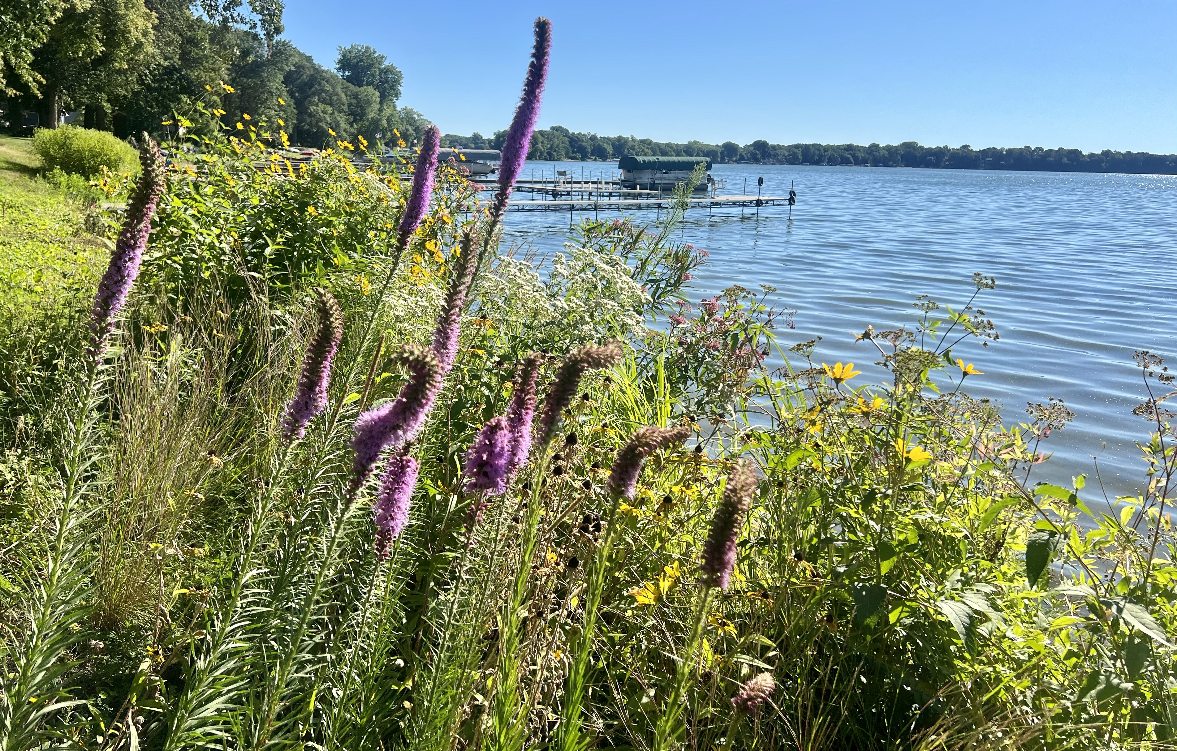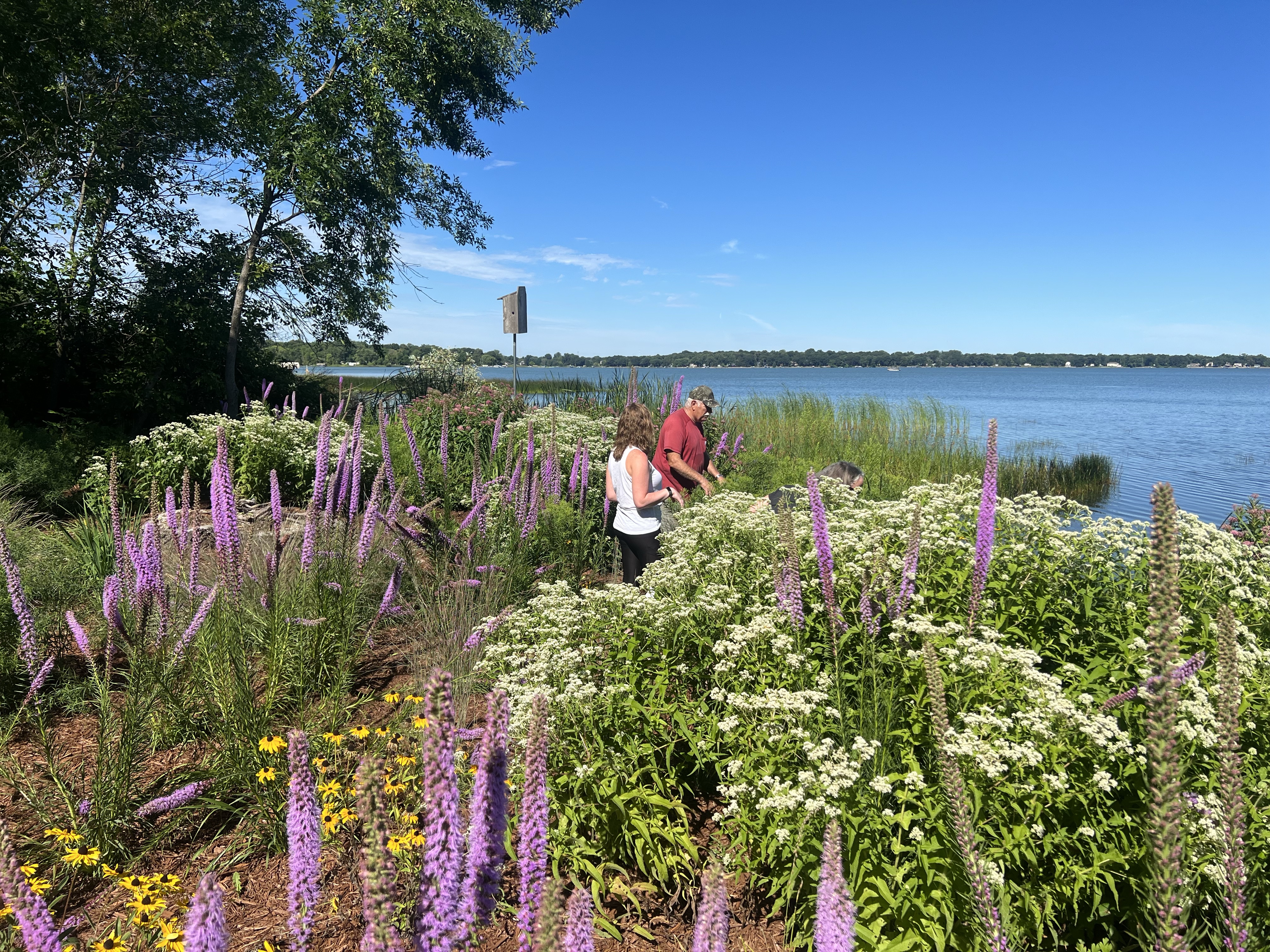 “It’s so satisfying watching people go through this process and seeing them fall in love with their gardens. Plus, they recognize that they get so many more benefits out of their gardens than just helping pollinators. The deep roots of the native plants help reduce and filter runoff while also stabilizing shorelines, reducing pollution inputs to the lakes. These plants don’t need fertilizers and are more drought-resistant, saving people money. You get gorgeous blossoms all season long, invasive plants aren’t able to thrive, and people even notice that geese end up being less of a problem since they don’t like taller grasses and plants,” she says.