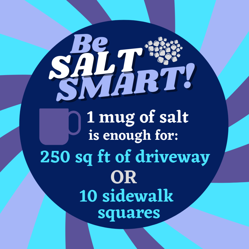 There have also been campaigns to raise general public awareness of smart salting practices – mostly to avoid using salt as much as possible by shoveling first, but if absolutely needed, a mug of salt is sufficient for managing 250 square feet of driveway or generally 10 sidewalk squares. Instead of haphazardly chunking handfuls of salt on the ground, try to space out the salt grains so there’s roughly 3 inches between pieces.