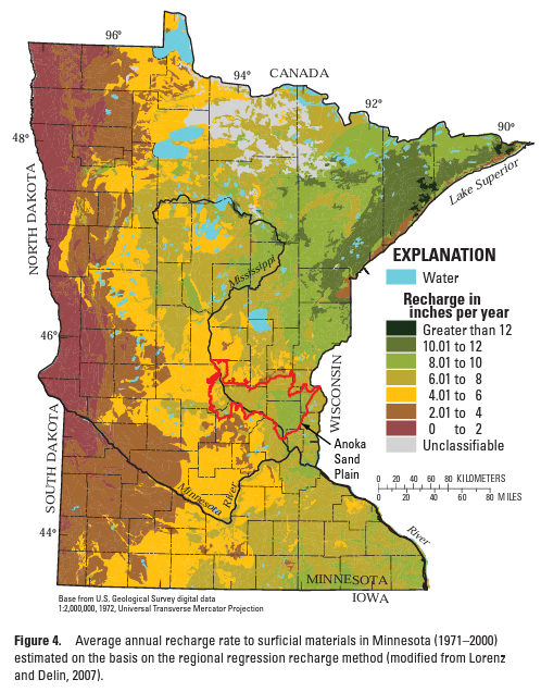 In Minnesota, where groundwater supplies 75% of our drinking water and 90% of agricultural irrigation, there’s already a huge push to identify and protect areas that can serve to infiltrate water and recharge our aquifers. In our corner of east-central Minnesota, the glacial history here has left plenty of areas capable of strong infiltration and recharge.