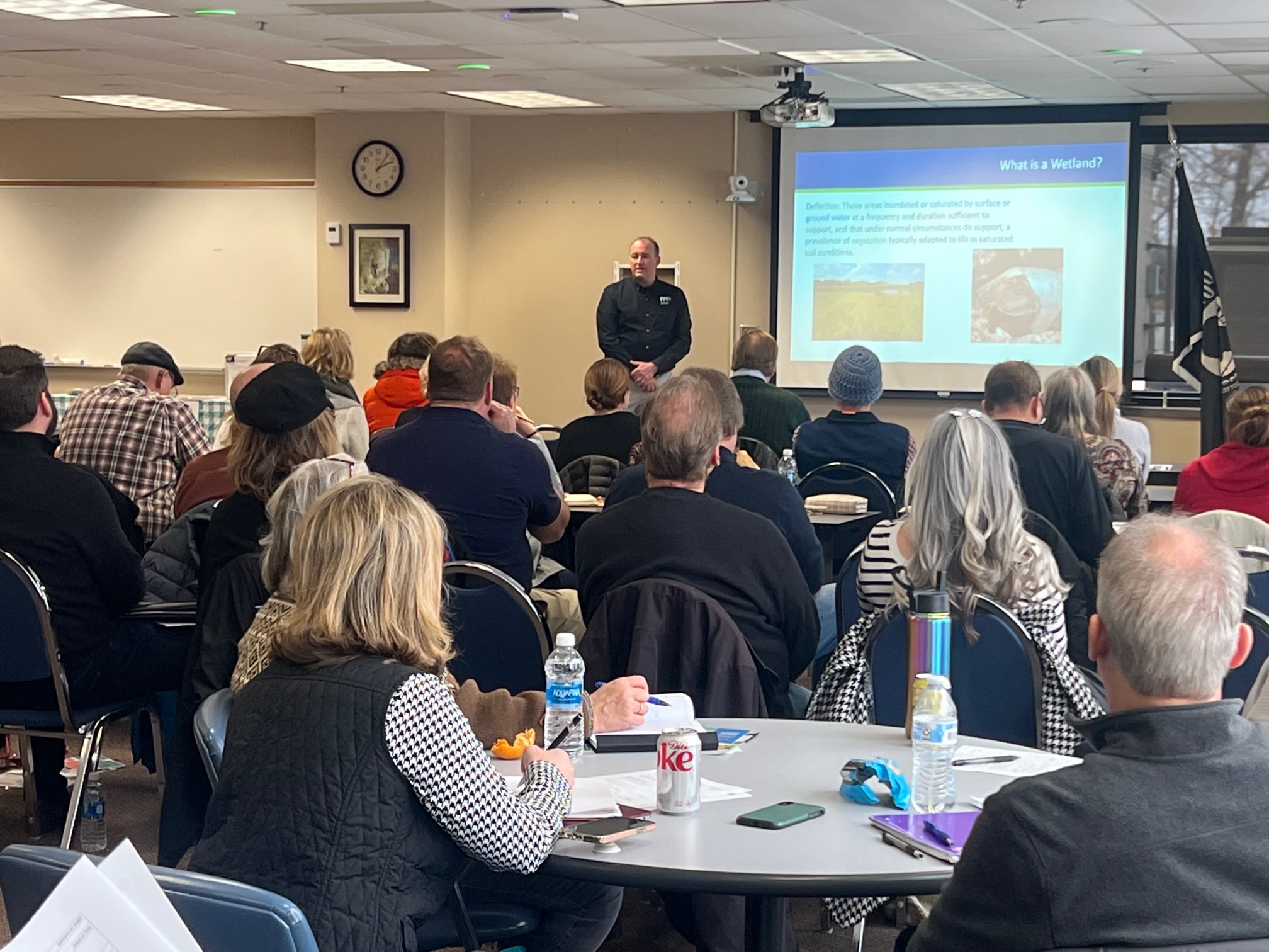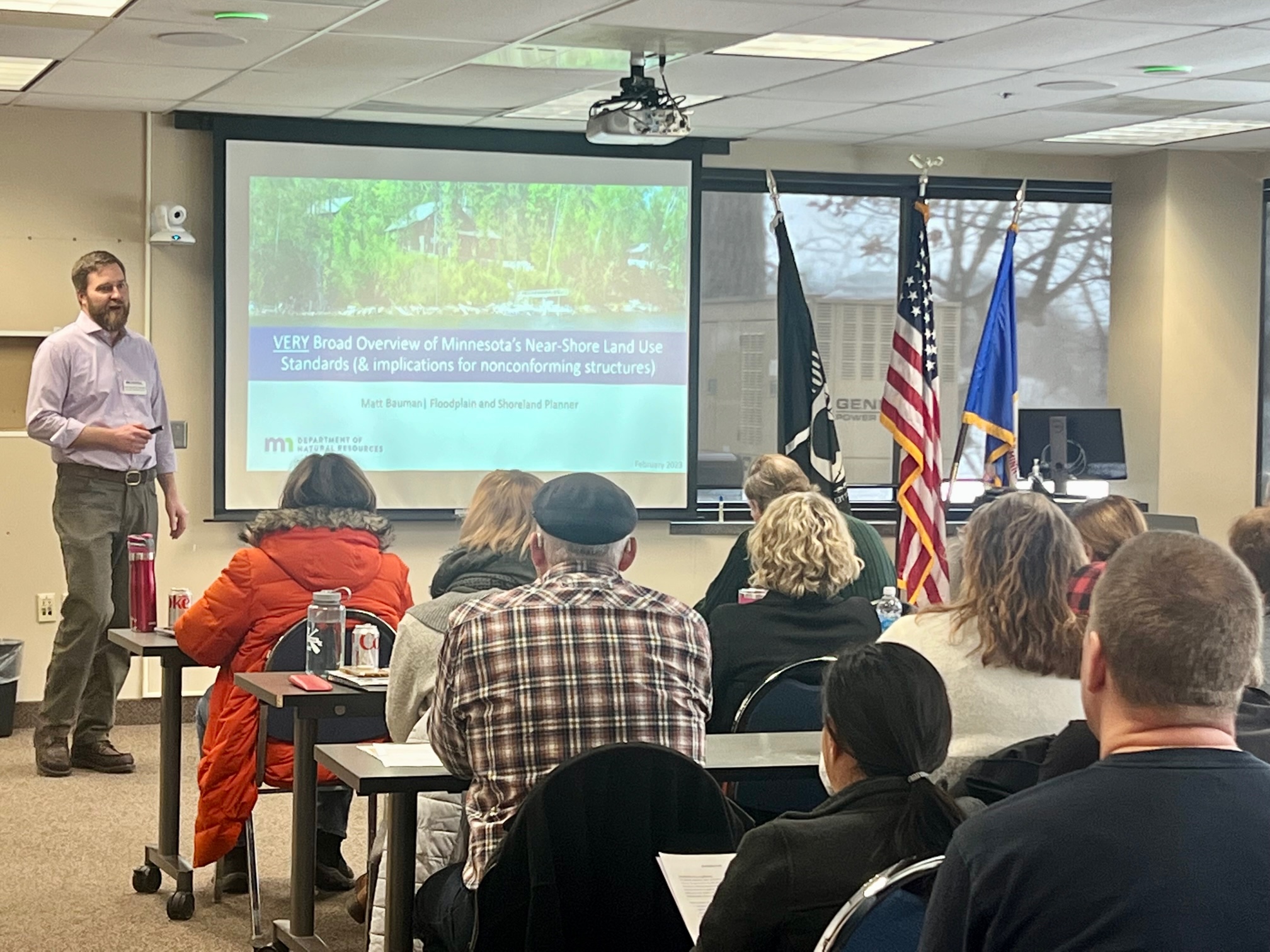 This hypothetical scenario is exactly the question that Tiffany Determan, District Manager of the Isanti Soil and Water Conservation District, posed to a room of 45 realtors at a lakeshore workshop recently in Center City, Minnesota. Hosted by the Lower St. Croix Watershed Partnership, a collaboration of fifteen local government units to help protect and restore the water resources in the Lower St. Croix watershed, and the St. Paul Area Association of Realtors (SPAAR), the workshop was offered to provide realtors with information about how and why shoreland is regulated and what information is key to help match clients with their dream lakeshore property. Speakers from the Minnesota DNR, Minnesota Board of Soil and Water Resources, Chisago County, and the Chisago Lakes Lake Improvement District also participated in the workshop.