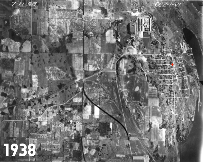 When I showed the kids snapshots from 85 years of Bayport historical imagery, they were absolutely fascinated. Aside from the fact that many observed that the houses and neighborhoods they live in now didn’t exist until the last 20-30 years, they picked out immediately how much our landscapes have changed due to human activity. Roads, railroad tracks, and bridges dissect the landscape into orderly grids and/or amorphous shapes. Natural areas of prairie and forest were converted into farm fields, housing developments, and/or commercial/industrial infrastructure.