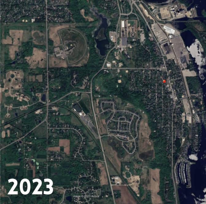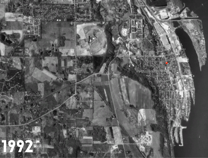 When you’ve lived somewhere long enough, you notice the landscape changing around you. A favorite store closes or moves elsewhere, a piece of land is developed for a new supermarket, or a former family farm is converted into a new residential housing development. The change feels like it’s slowly creeping, but year over year, those small changes add up. Nothing brings it home more than looking at historic aerial photos.